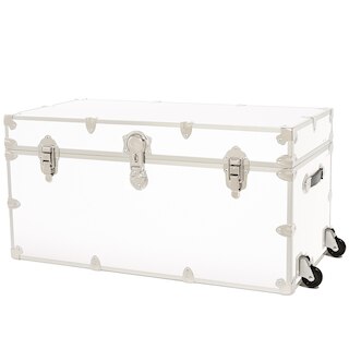 Lockable, strong, secure dorm trunk, table, bench all in one. Sitting weight 1000+ lbs. Features "no slam" lid, steel hardware, water/scratch resistant. Birch interior. Will last well beyond college. Comes with removable wheels. 36x18x18H 37 lbs.